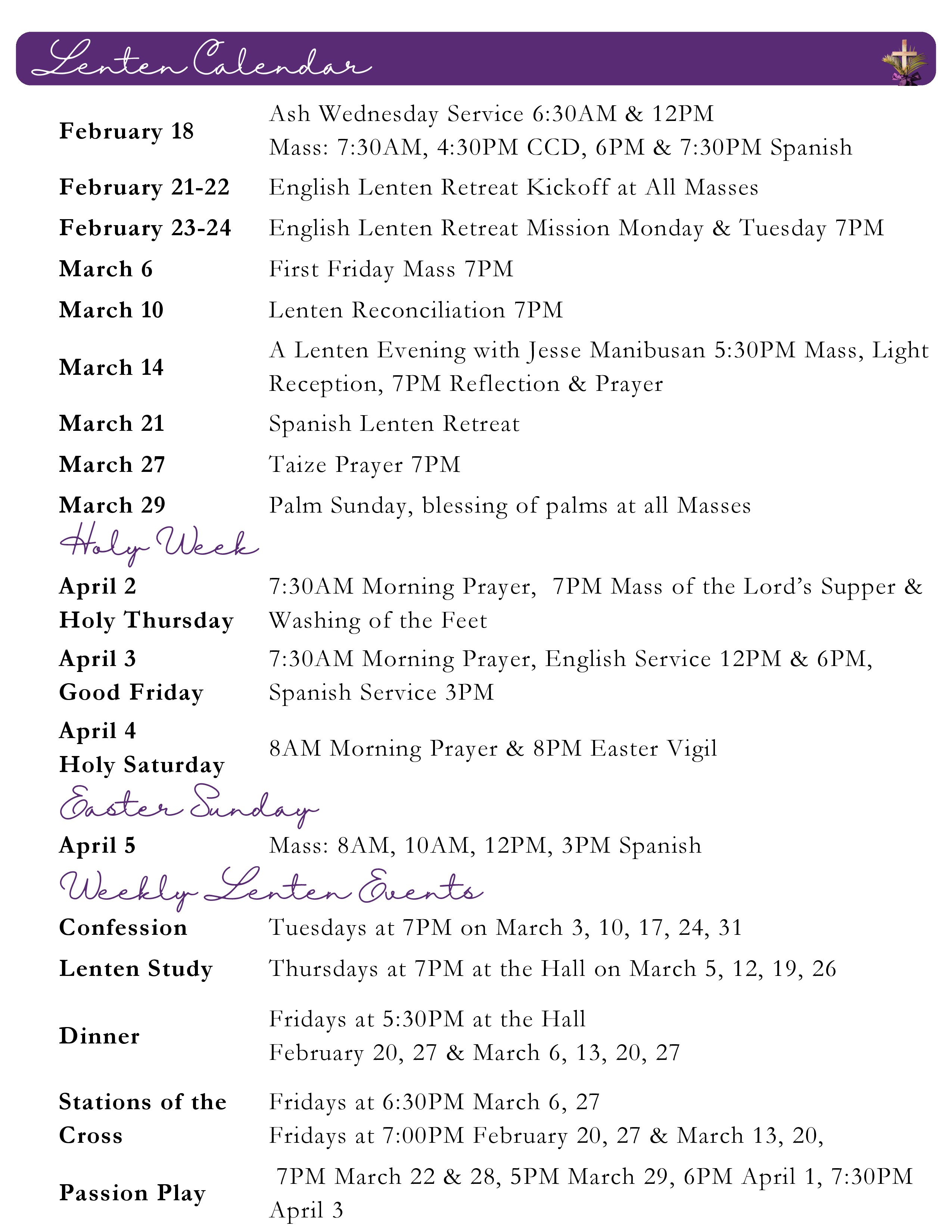 Last Friday Lenten Dinner 5:30 PM |